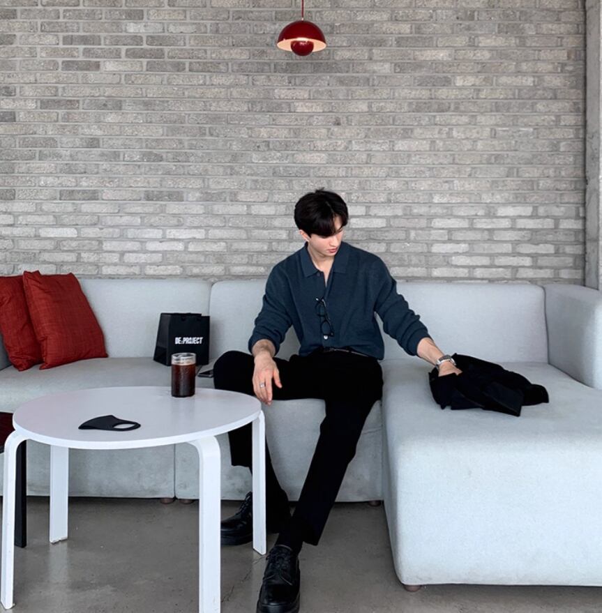 スタイリッシュに着こなす長袖ニットポロシャツ 韓国アパレル