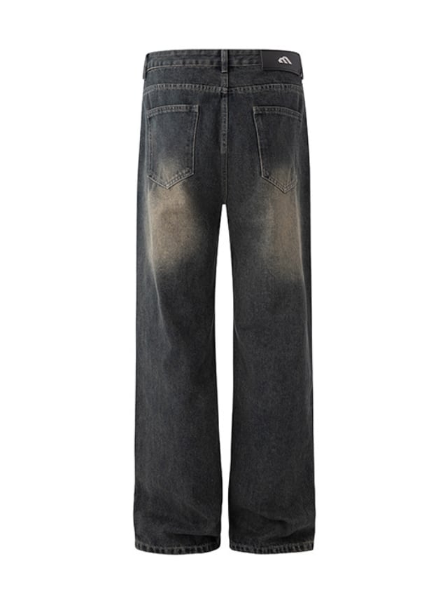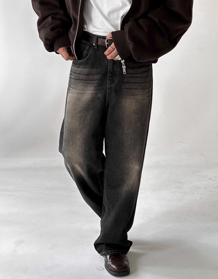 スタイリッシュに楽しむ韓国 ウォッシュ加工ワイドストレートジーンズ
