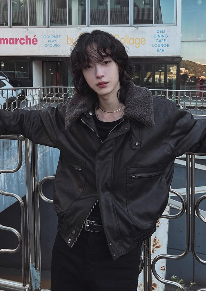 スタイリッシュなラムウールレザージャケット 韓国アパレル